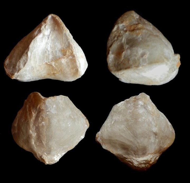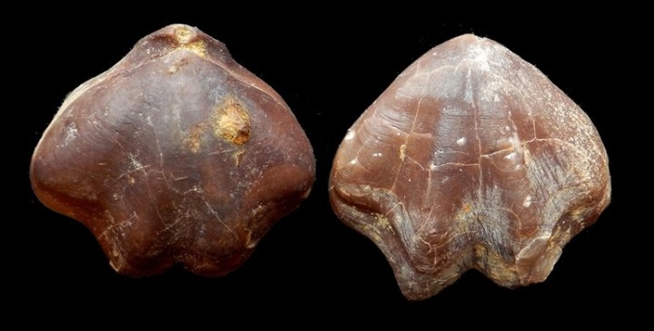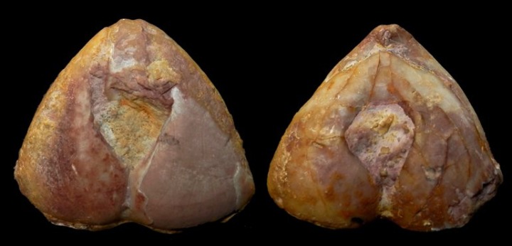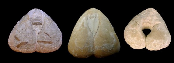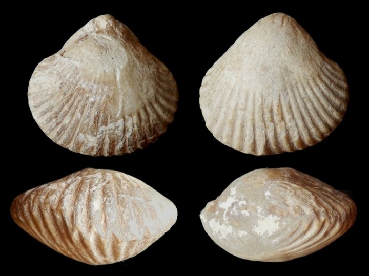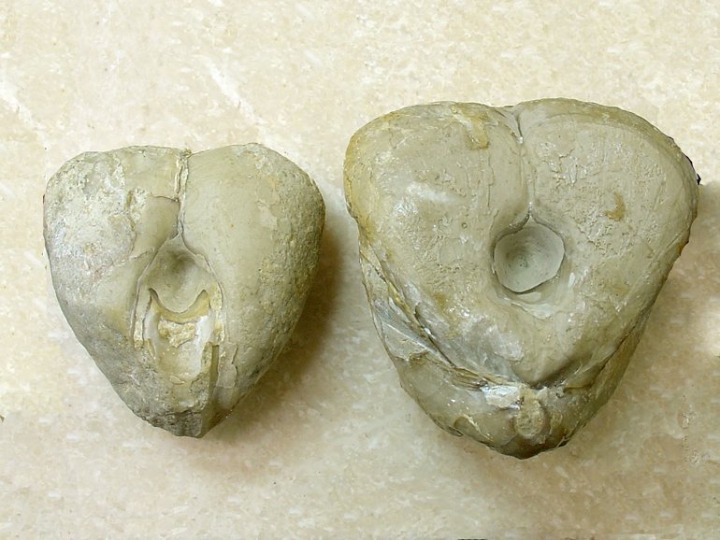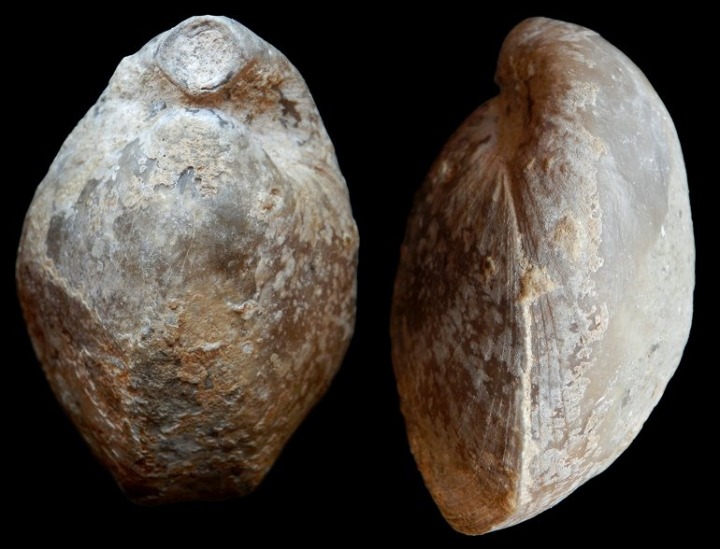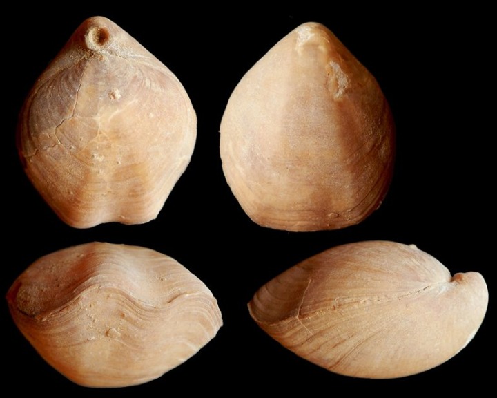 Concha de tamaño mediano a grande (3-5 cm), biconvexa, de contorno triangular, con una perforación central muy característica. Lisa con marcadas estrías de crecimiento. Su localización puede ser indicativa de facies muy profundas, ya que llegaron a vivir a profundidades superiores a los 1000 m. Jurásico superior.-Cretácico inferior.