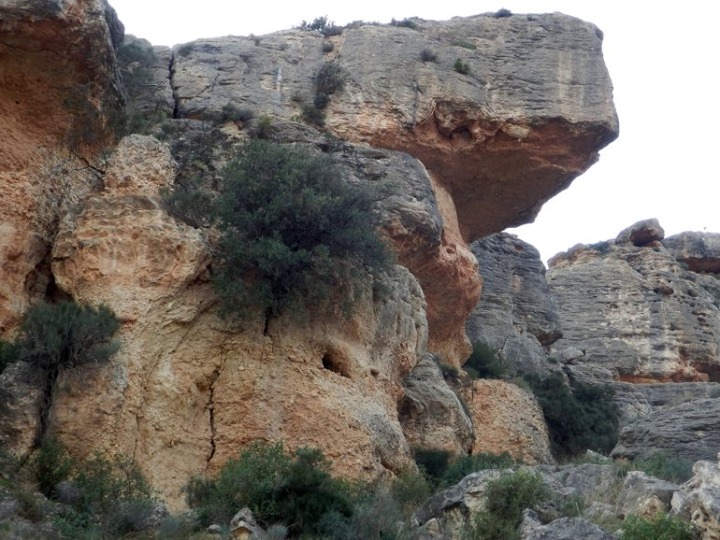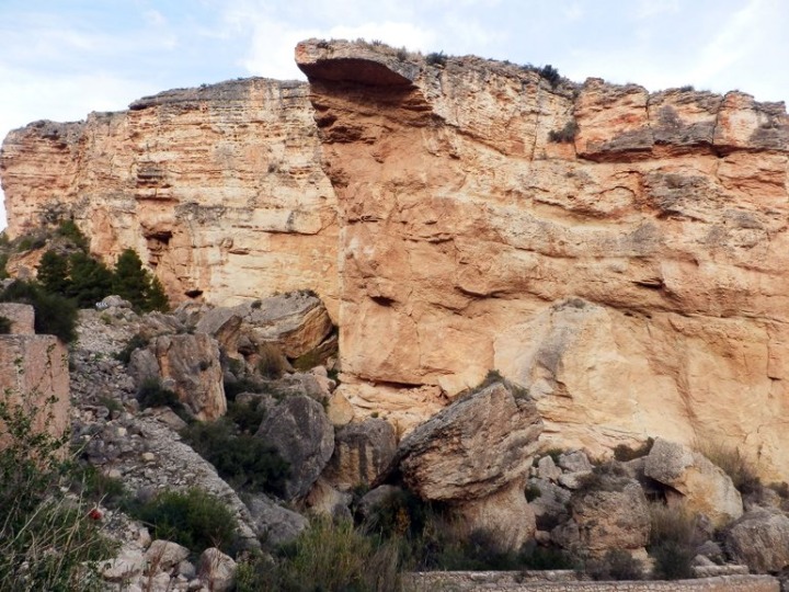 El cauce que secciona el Cortao de las Peñas provoca desprendimientos. Obsérvese la visera que han generado en la parte superior de la pared.