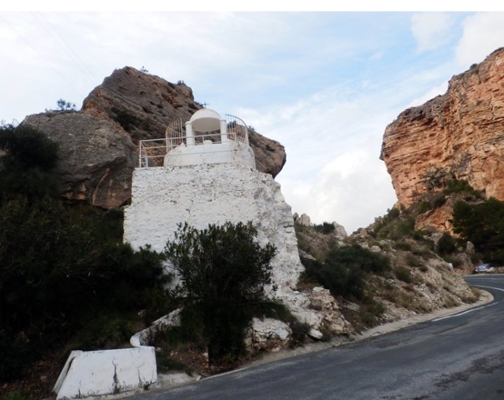 Infraestructura hidráulica para aprovechar el agua que discurre por la zona. Sobre ella un pequeño altar dedicado a la Virgen de Fátima.