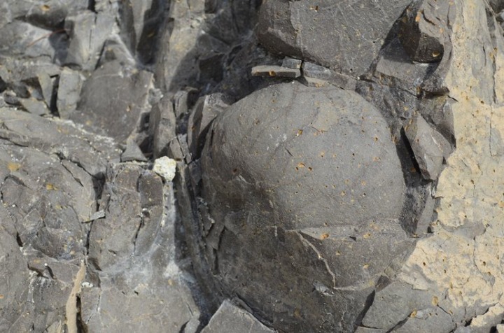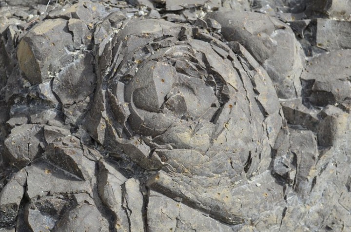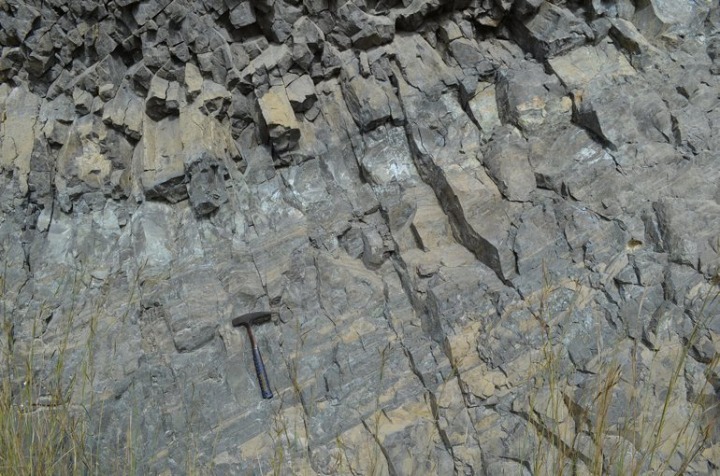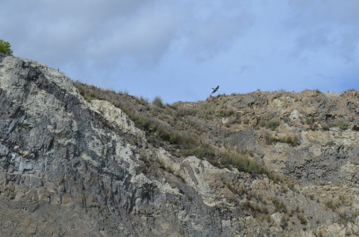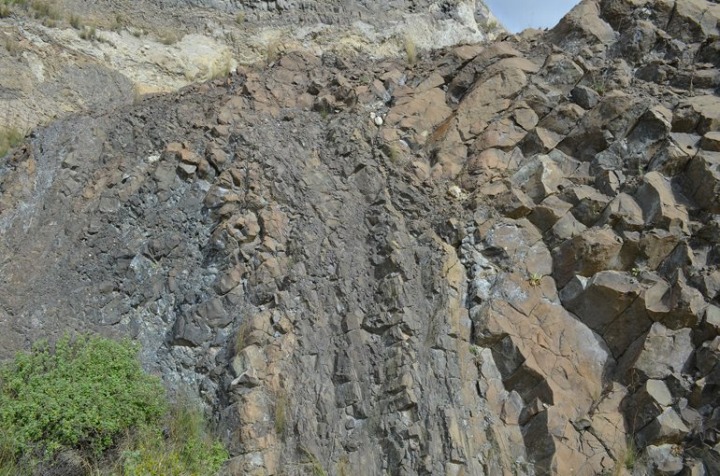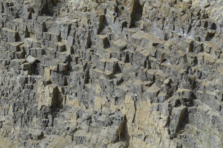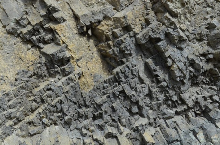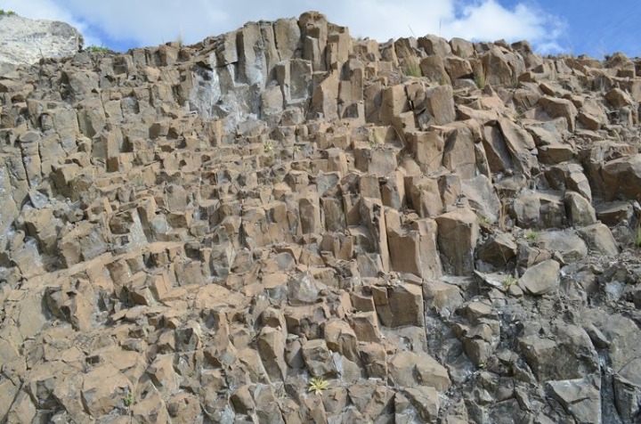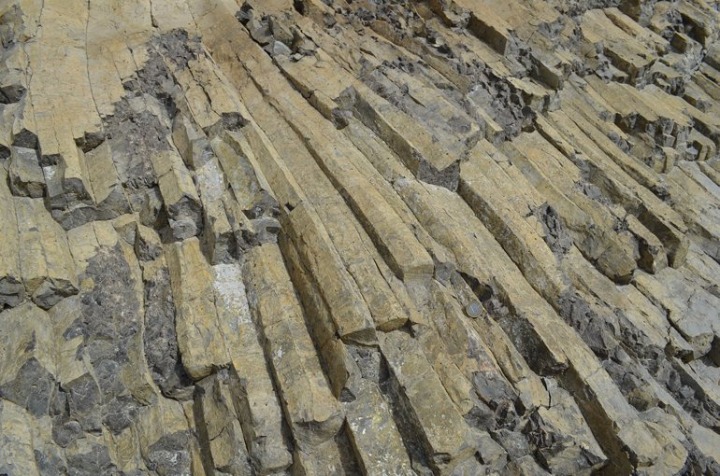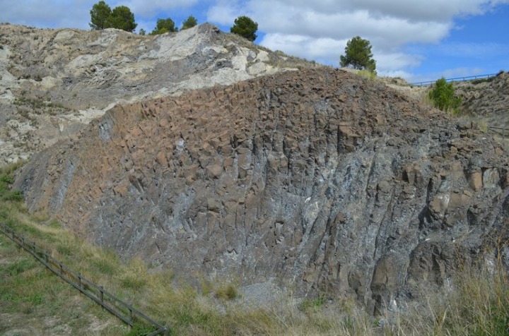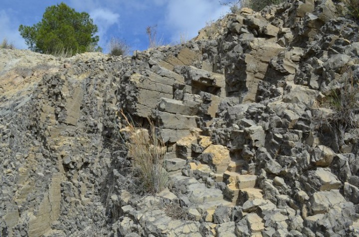 Disyunción columnar horizontal de las rocas volcánicas de la parte alta del Cerro negro de Calasparra