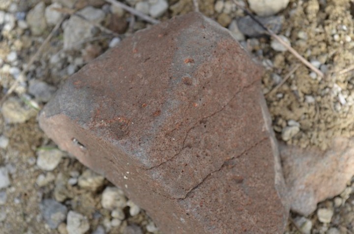 Los bloques de roca que limitan el aparcamiento tiene interés geológico. Un insecto palo sobre cristales de calcita en una arenisca
