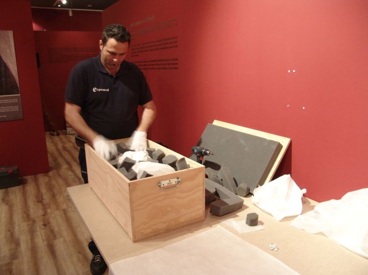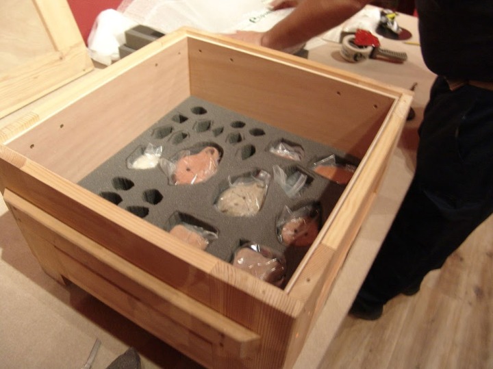 Detalle de cómo quedan las piezas dentro de las cajas preparadas.