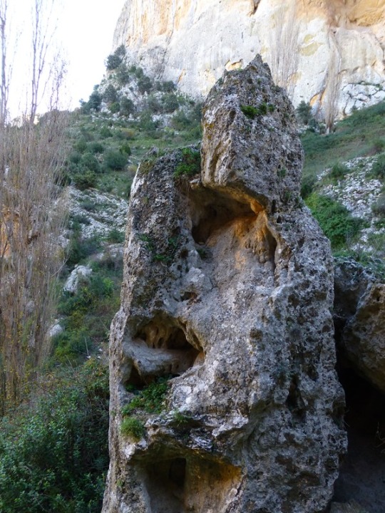 El ser humano siempre ha utilizado estos bellos entornos geológicos en sus rituales religiosos. Aquí todavía se hace. Al fondo un pequeño altar