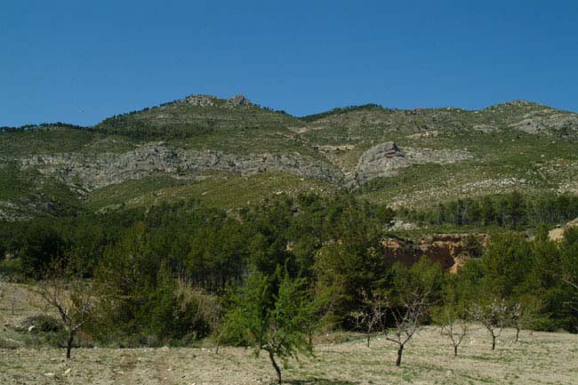 Hacia el Suroeste, la cuenca de Cieza, rodeada por los relieves de Sierra del Puerto, Picacho, Larga, Ascoy, y Sopalmo, se caracteriza por las amplias superficies de débil inclinación, glacis que la enlazan con los retablos montañosos que la cierran y se dirigen hacia el Segura.