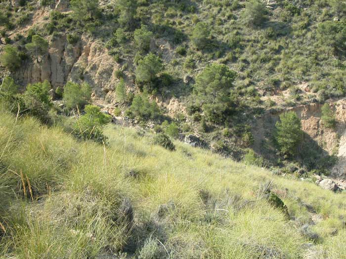 Las laderas de solana, por recibir una mayor insolación y mantener sus suelos menor humedad, quedan cubiertas por pinares abiertos y matorrales bajos, donde crecen especies como el esparto, el romero, diversas especies de tomillos, lavandas y el lastón, que forma un pasto denso y bajo. Las comunidades vegetales de mayor interés botánico son los tomillares sobre yesos en el Cerro de la Rosa. Se trata de comunidades capaces de crecer sobre suelos con altos contenidos en diversos tipos de sales. Al estar constituidas por plantas muy especialistas y de escasa área de distribución, tienen un gran interés científico y de conservación.