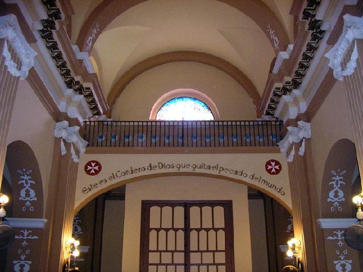 Presbiterio: Es el espacio que circunda al altar mayor, está en la cabecera del templo y esta reservado al clero y a los momentos más relevantes que se desarrollan durante la liturgia.
