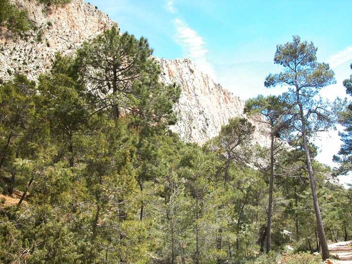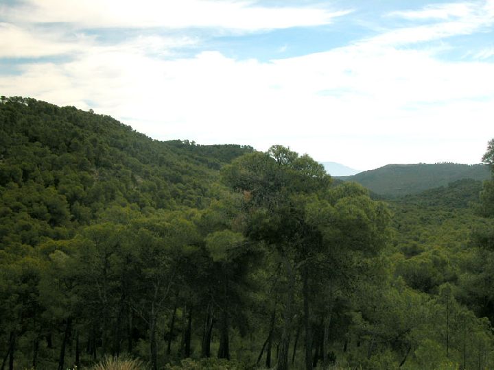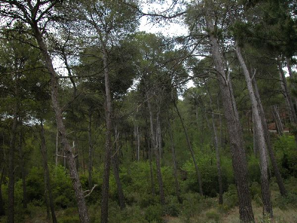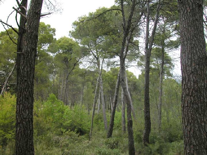 Vista de la frondosidad del pinar que cubre la mayor parte de la superficie del Parque. P. R. Sierra Espuña.