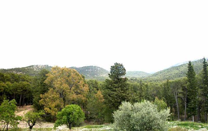 Detalle de la gran diversidad de vegetación en algunas zonas del Parque. Se observan frondosas, cipreses, olivos, pinos,... P. R. Sierra Espuña.