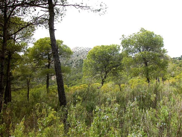 Vista de la frondosidad del pinar que cubre la mayor parte de la superficie del Parque. P. R. Sierra Espuña.