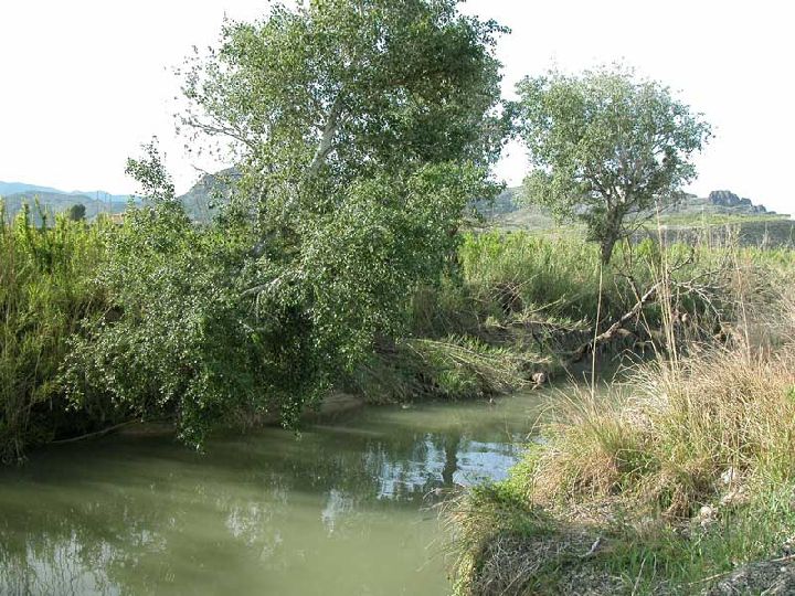 En los márgenes de numerosos arroyos murcianos, donde no puede establecerse el bosque en galería, las aguas se encuentran flanqueadas por un entramado arbustivo de sauces (Salix sp. pl.), con frecuencia también de muchas pequeñas varas de estas mimbreras en estado juvenil, alternándose con juncales, zarzas (Rubus ulmifolius), y salpicados de chopos lombardos (Populus nigra var. italica).
