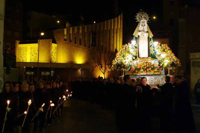 Aunque en esa época no existían Hermandades, las procesiones eran presenciadas por un gran número de feligreses. Las mujeres vestían de negro y se tocaban con echarpe del mismo color, mientras que los hombres se cubrían con capa española y también vestían de negro. Las modestas 'andas' se adornaban con flores naturales de la huerta y las procesiones nocturnas se alumbraban con velas.