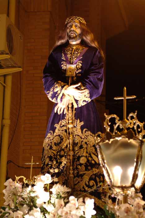 Desfila con ella el Cristo de Medinaceli y el Cristo de los Azotes, éste último obra del escultor José Planes. El Trono de su Titular es de 1985, obra de los talleres locales de Gómez Yelo e Hijos.