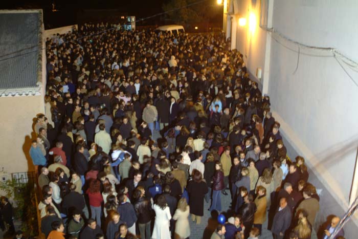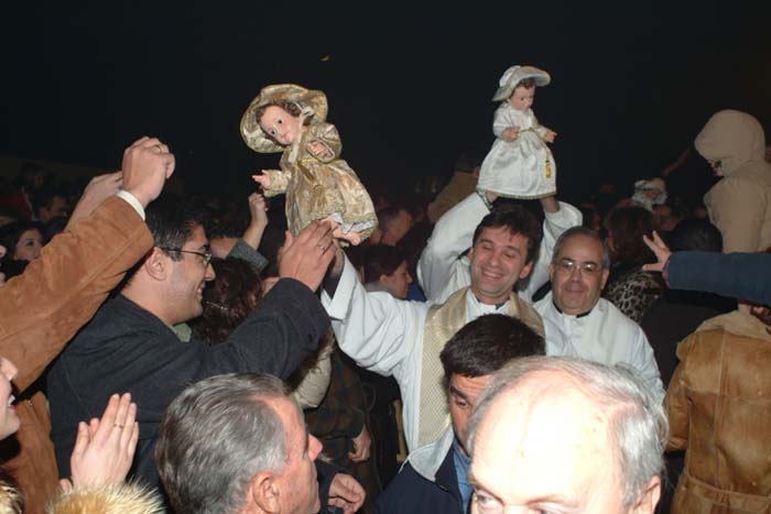 El porteador del Niño dice: 'El Niño Jesús en esta Santa Casa', a lo que los presentes responden: 'Bienvenida sea', y cantan villancicos mientras que todos adoran al Niño. Cuando este emotivo acto concluye, el porteador se despide con 'Hasta el año que viene', y todos los reunidos responden: 'Así sea'.