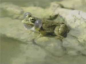 Tienen una gran agilidad, y se desplazan a grandes saltos en tierra, siendo a la vez una excelente nadadora. Es el más ruidoso de nuestros anfibios, pudiendo escucharse los coros de machos a gran distancia. Utiliza para el canto dos sacos bucales dispuestos cada uno a un lado de la boca.