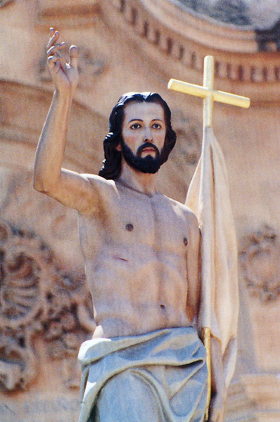 Procesión de la imagen del Resucitado desde la Parroquia de las Tres Ave Marías.