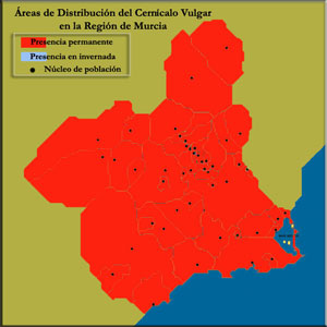 En Murcia lo podemos observar por todo el territorio regional, siendo muy común contemplar su característico planeo en campos recién segados o en los campos adyacentes a carreteras.