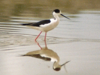 Posee una patas de color rojo muy alargadas que parecería que le dan un equilibrio inestable, ocurriendo todo lo contrario. Es como una cigüeña en miniatura.