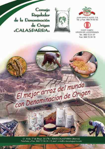 Con una historia de siglos, el arroz es el producto por excelencia de Calasparra y su calidad ha sido reconocida en el mundo entero. De este modo, si se pretende degustar un plato como el arroz y conejo con caracoles u otro cualquiera de la amplia gama de arroces que se preparan en el municipio de Calasparra, lo más aconsejable es elaborarlo con arroz de Calasparra, el primero en el mundo con denominación de origen.