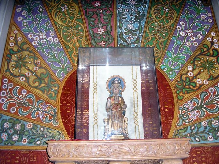 Sigue la iconografía románica, según el modelo de la Teotocos bizantina, la Virgen como trono de Dios. Son dos imágenes muy hieráticas, con una acusada frontalidad. No obstante aparece una cierta dulzura de rasgos y actitudes que sitúan a la imagen en un momento de transición hacia el gótico.