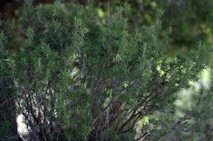 Sus hojas son alargadas (de entre 2 y 3,5 cm) y muy finas, distribuyéndose en forma alterna por parejas, existiendo, siempre, un ángulo de 90º entre la disposición de las parejas de hojas anteriores y posteriores (a las hojas que guardan esta disposición se les llama decusadas). Tienen un color verde oscuro por el haz y blanquecino por el envés.