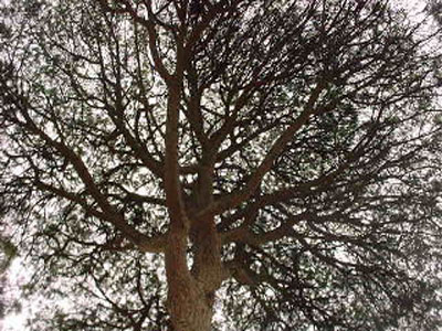Se trata de un árbol de hasta 30 m de alto, con un tronco columnar que en la parte superior se abre en varias ramas de grosor parecido, formando una copa espesa y ancha, con la forma aparaguada típica de los árboles que necesitan mucha luz. La corteza tiene una textura acorchada y escamada y tiene un color pardo gris o pardo rojizo.