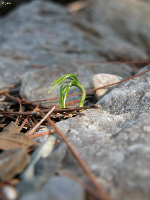 Dentro de las piñas se encuentran las semillas aladas que se esparcen cuando la piña madura y se abre. Las piñas están maduras al final del segundo verano.