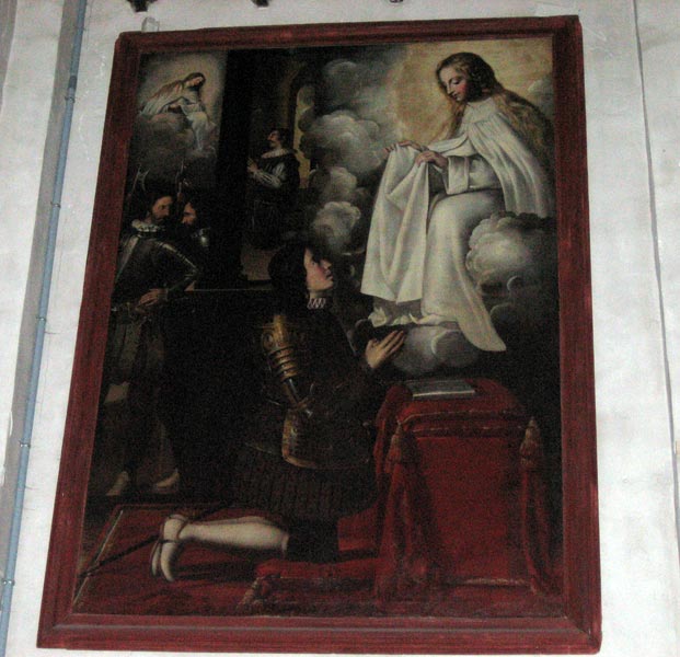 Óleo sobre lienzo. Representa la aparición de la Virgen al nuevo santo, san Pedro de Nolasco, y sobre todo al rey Jaime I.