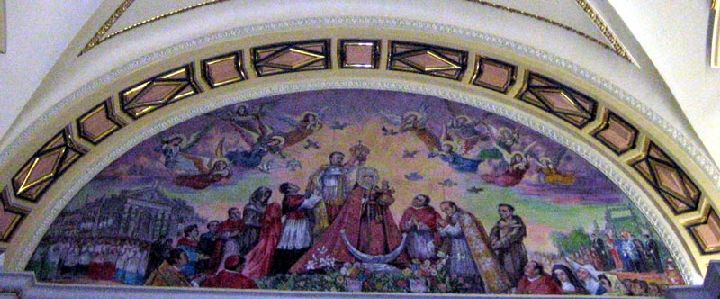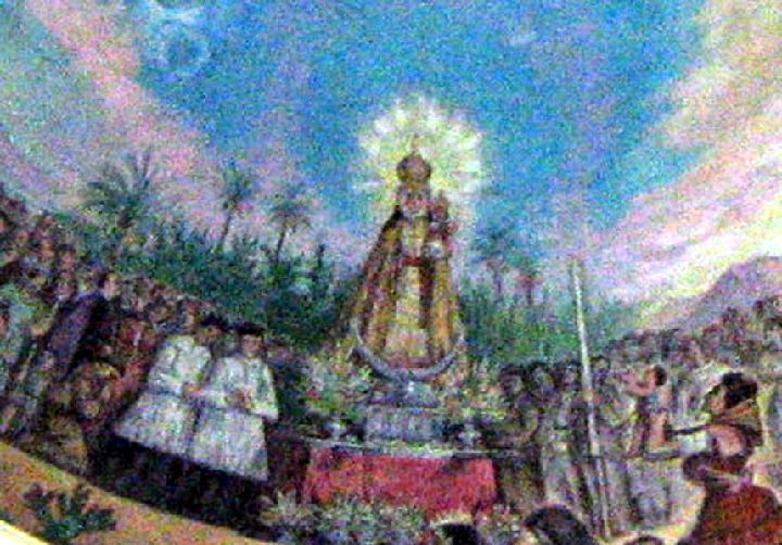 Pedro Flores dejó el testimonio más visible de su obra pública en los frescos que presiden la cúpula del Santuario de la Fuensanta.