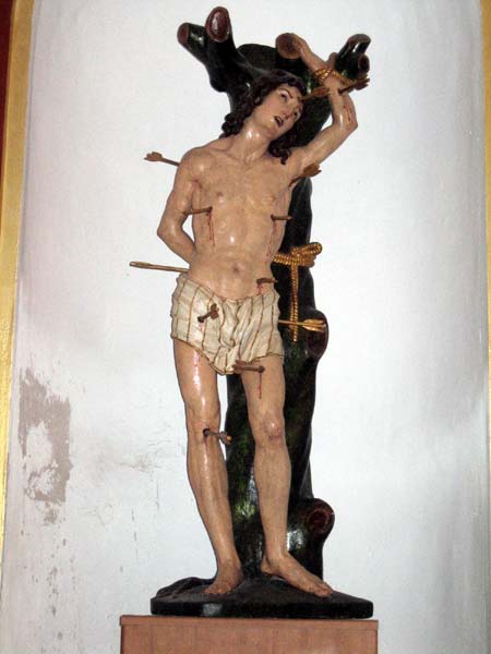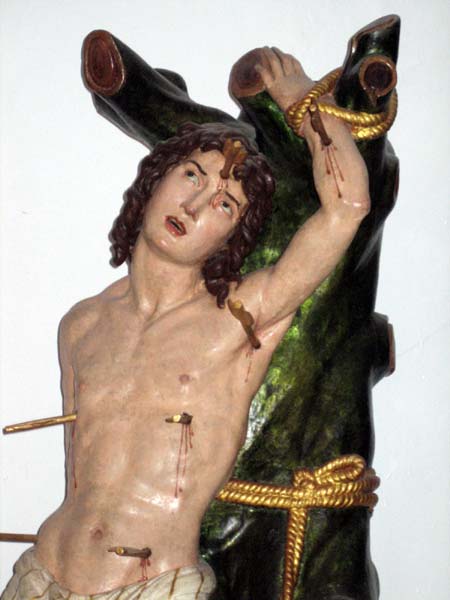 Se trata de la imagen de San Sebastián asaetado por multitud de flechas. Es el primero de sus martirios.