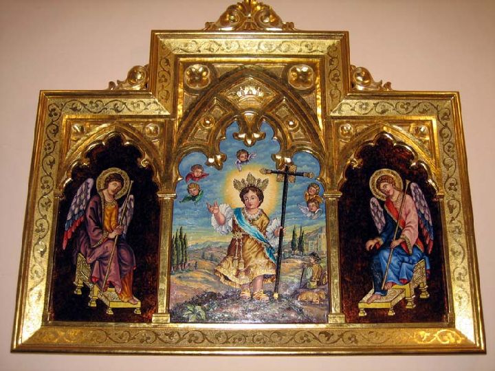 En dicha tabla observamos la representación de la aparición del Niño Jesús de Belén al pastor Pedro Botía.