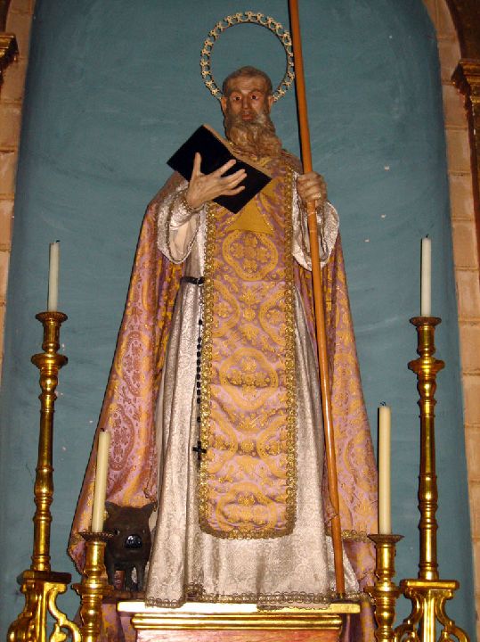 San Antonio Abad, se retiró al desierto de Egipto atrayendo a numerosos seguidores. En la antigüedad se rogaba para que por su intercesión se alejara la peste que atacaba a los animales, estando especialmente vinculado a la protección de los cerdos.