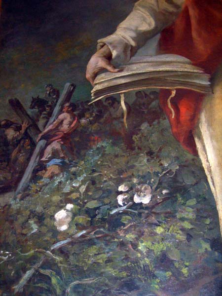 San Andrés, se encuentra en el centro de la composición. Es una figura de gran tamaño, ya que ocupa casi todo el lienzo.