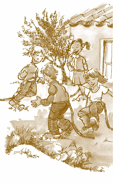 Número de participantes: Cuatro o más.Material: Trozos de cuerda de un metro aproximadamente.