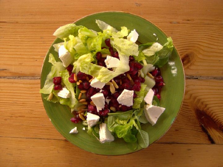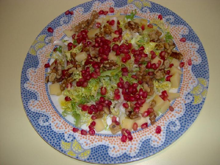 La granada también constituye un interesante y poco usual ingrediente para nuestras ensaladas de otoño e invierno, por ejemplo, en ensalada de escarola con nueces y queso Emmental.