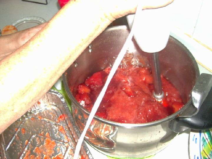La carne de membrillo con su azúcar es una mezcla muy pastosa y más cuando se va reduciendo por efecto de la cocción. Salpica como si de la lava de un volcán se tratase y alcanza elevadas temperaturas, por lo que deberemos llevar cuidado de no quemarnos.