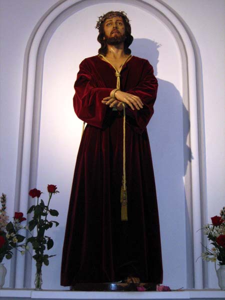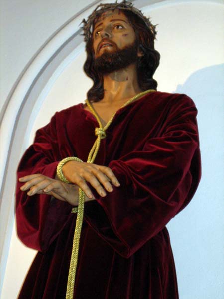 Se trata de la representación del Cristo del rescate. Está colocado de frente y de pie. Sus manos se cruzan por delante a la altura de la cintura, atadas por un cordón dorado que cuelga del cuello.