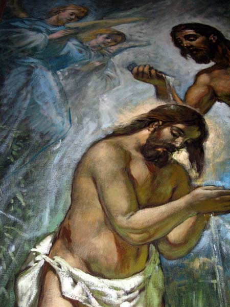 Se trata de la representación del bautismo de Cristo en el río Jordán.