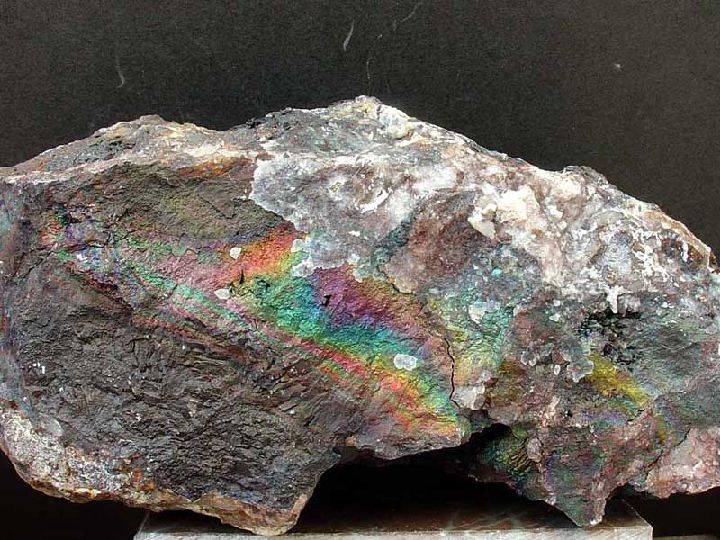 Existe una variedad irisada que se reconoce fácilmente por sus irisaciones en vivos colores metalizados con predominios de los azules, verdes y violetas.
