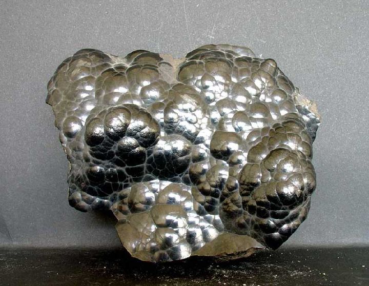 Su hábito botrioidal en superficie y fibroso en sección, junto con su color negro lo distinguen del resto de minerales salvo de la pirolusita (raya negra azulada) y del oligisto (con raya pardo-rojiza).