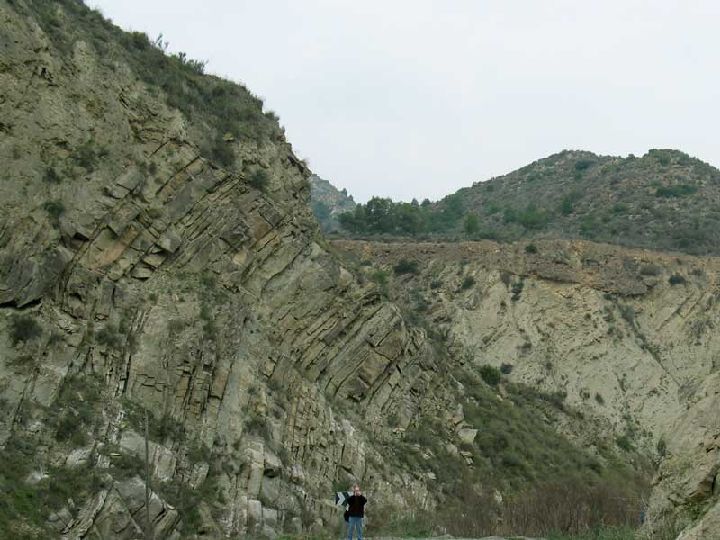 Cuando los estratos de arenisca poseen cierta inclinación y aparecen intercalados entre margas dan lugar a paisajes en cuesta (Molina de Segura, Fortuna, Abanilla, Ulea, Blanca, Mula, Lorca, etc.). Si los estratos están verticales, originan modelados en cresta (Sierra de la Espada, Molina de Segura).