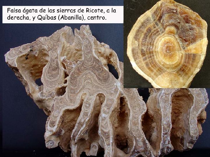 Los depósitos de falsa ágata, han sido explotados como rocas ornamentales en diversas zonas de la región como en las sierras de: la Pila (Fortuna), Quibas (Abanilla), Carrascoy (Murcia), Ricote, etc.