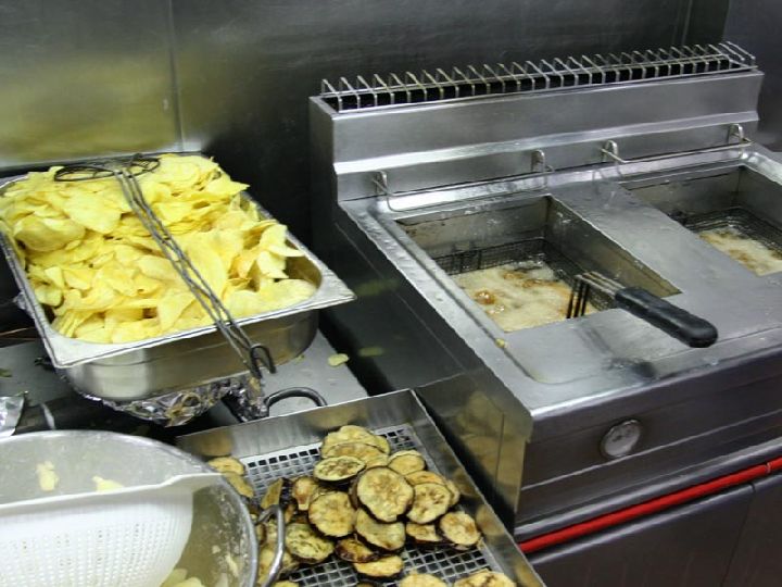 En abundante aceite se fríen por separado la berenjena y la patata. Luego se retiran de la sartén y se escurre bien la berenjena. Se añade sal al gusto.
