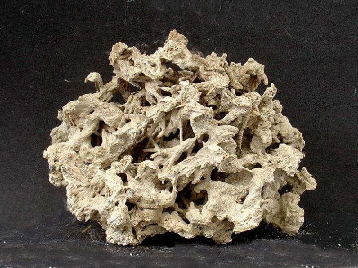 Travertino originado por la precipitación de carbonato cálcico sobre algas del grupo de las charáceas. Río Chícamo (Abanilla)