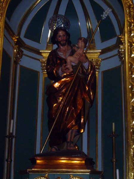 Se trata de la figura de San José, el cual lleva entre sus brazos al Niño Jesús.