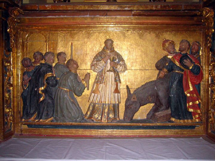En las calles laterales, se representan diversos relieves con los milagros atribuidos a san Antonio.