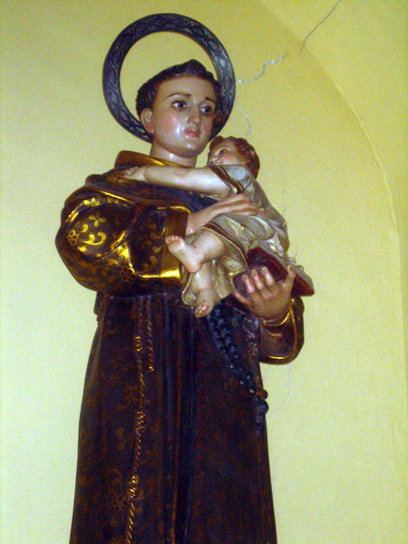 Se encuentra este retablo en el lado de la epístola. La imagen del santo se expone en la hornacina central. En esta iconografía San Antonio no solo porta al niño sino que este descansa sobre un libro. Se muestran pues las dos atributos del santo, el niño y el evangelio, puesto que fue nombrado por la Iglesia Doctor Evangelicus.