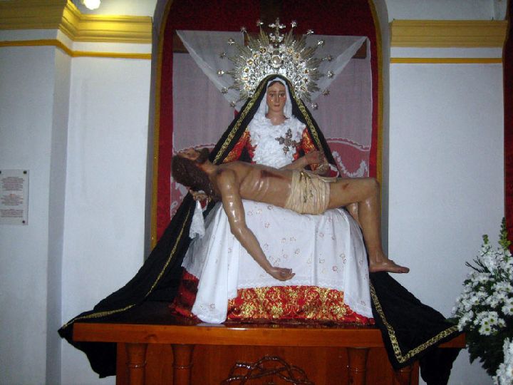 Se trata de la representación de la Virgen con el cuerpo yaciente de su hijo.