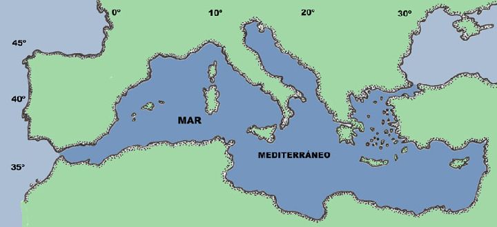 El Mediterráneo es uno de los mares marginales más grandes del planeta (figura 1), que como su propio nombre indica, está encajonado entre tierras de muy diferente aspecto que forman parte de tres continentes diferentes, Europa, Asia y África (figura 2).
