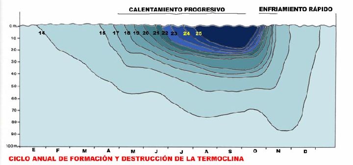 Figura 5. Aparición y desaparición de la termoclina en nuestras aguas