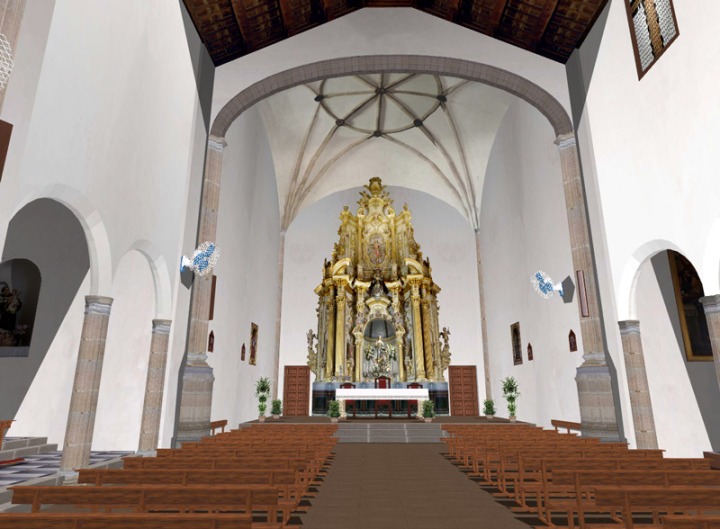 Este contenido recrea en 3D la Iglesia de la Concepción, que se encuentra situada en la Calle Corredera, en las inmediaciones del Templete. Se trata de un edificio renacentista cuya construcción comenzó en 1532. En su interior cabe destacar el artesonado mudéjar de madera y el retablo barroco del siglo XIX con una imagen de la Purísima Concepción.